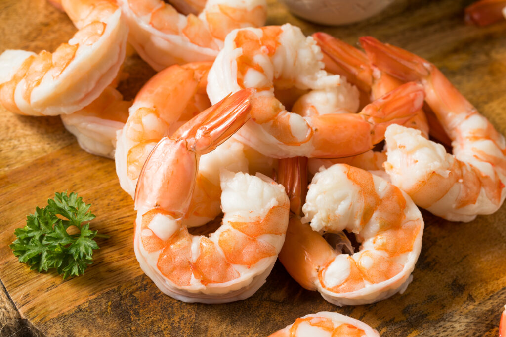 5. Once cool, take shrimp out of ice water, remove shells and tails, and devein.