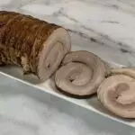 3. Roll the pork belly tight starting at the shortest side and tie with butchers twine. There are several different ways to do this but the important thing is to make sure the belly remains tightly wrapped during cooking. See video for an example of how to tie your pork belly.