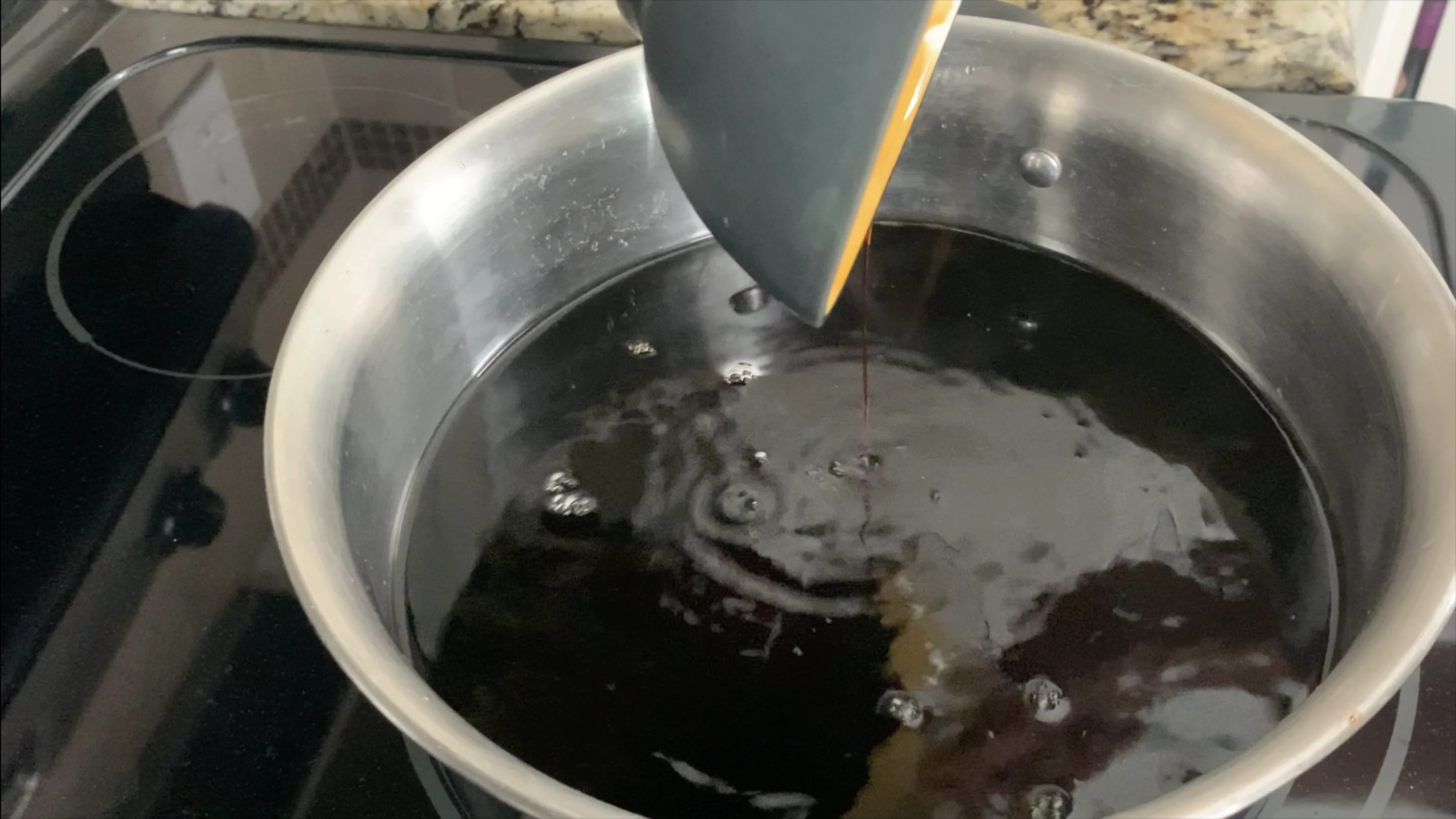 - After cooking liquids are cool enough to work with, strain into a large bowl. Skim any fat that may float to the top as the cooking liquids continue to cool. Do not discard the cooking liquids as you will use later.