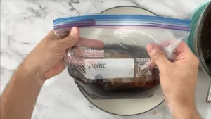 15. After the pork is cooled, place in a freezer bag and add enough of the cooking liquids to submerge the pork. Squeeze all the air out of the bag, seal, and place in fridge overnight. Save the remaining cooking liquids in the fridge or freezer as you can use those in other dishes or as a sauce to reheat the chashu.