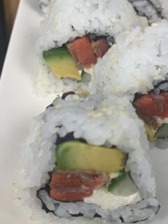 Named for its fun dragon-like appearance, the dragon roll is a tasty roll that provides a variety of flavors and textures. The savory flavor of the shrimp tempura combined with the avocado make this one of my favorite rolls. In my opinion, unagi sauce is a must for this roll as its sweet flavor complements the rich flavors of the rest of the roll.