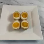 • The next day, remove the eggs from the marinade, gently dry with a paper towel, gently cut the egg in half the long way and enjoy!