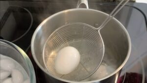 • Gently stir the eggs for the first minute they are in the water to make sure the yolk stays in the center of the egg.